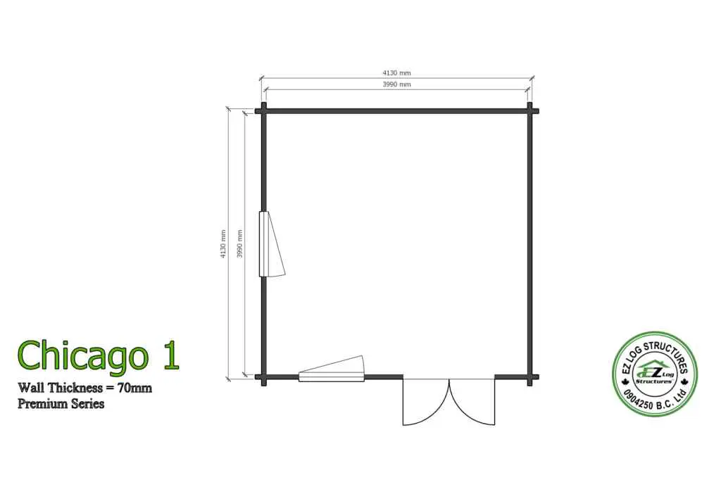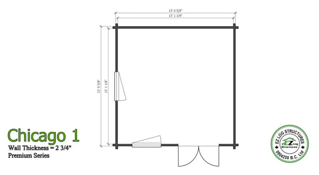 The Chicago 1 is a solid 1 room cabin with vaulted ceilings. It has stacked walls that are 70mm (2-3/4″) thick. Like all our models it can be customized to fit your personal needs. (sq footage is based the total footprint, living space could be less, see floor plans)
