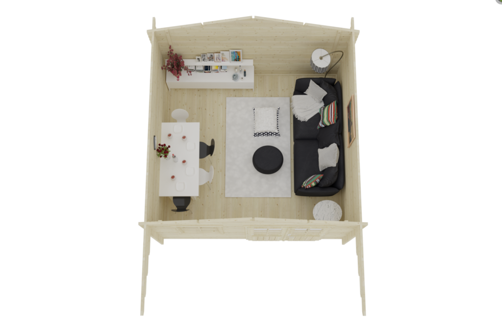 Tip: assemble on a LEVEL concrete slab, paving stones, or treated 4×4’s to raise the building off the ground