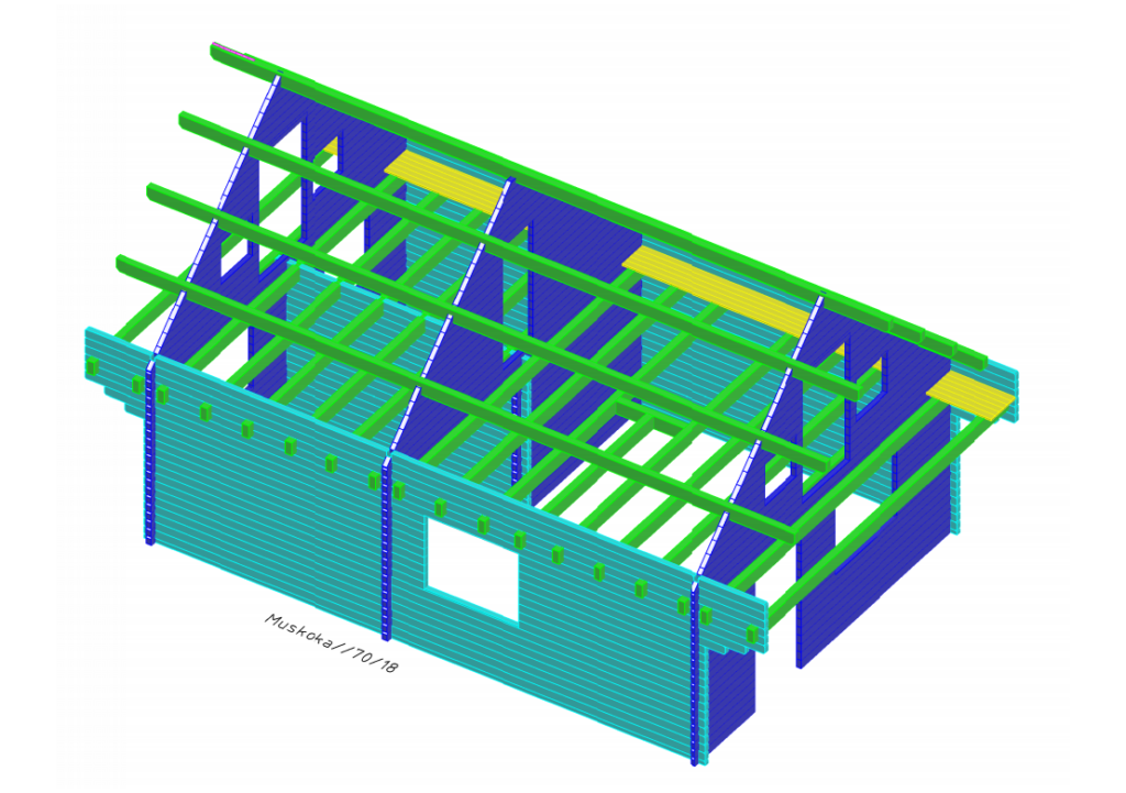 • pre-cut, 100mm x 200mm (4″x8″) numbered glulam roof purlins/beams, spaced 558mm (22″) or less