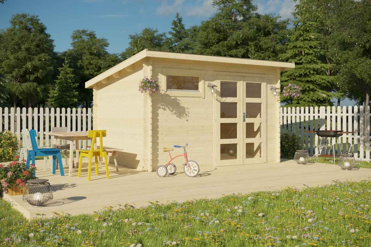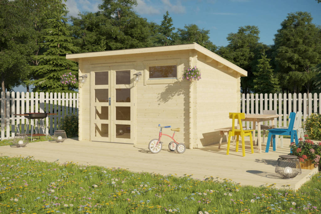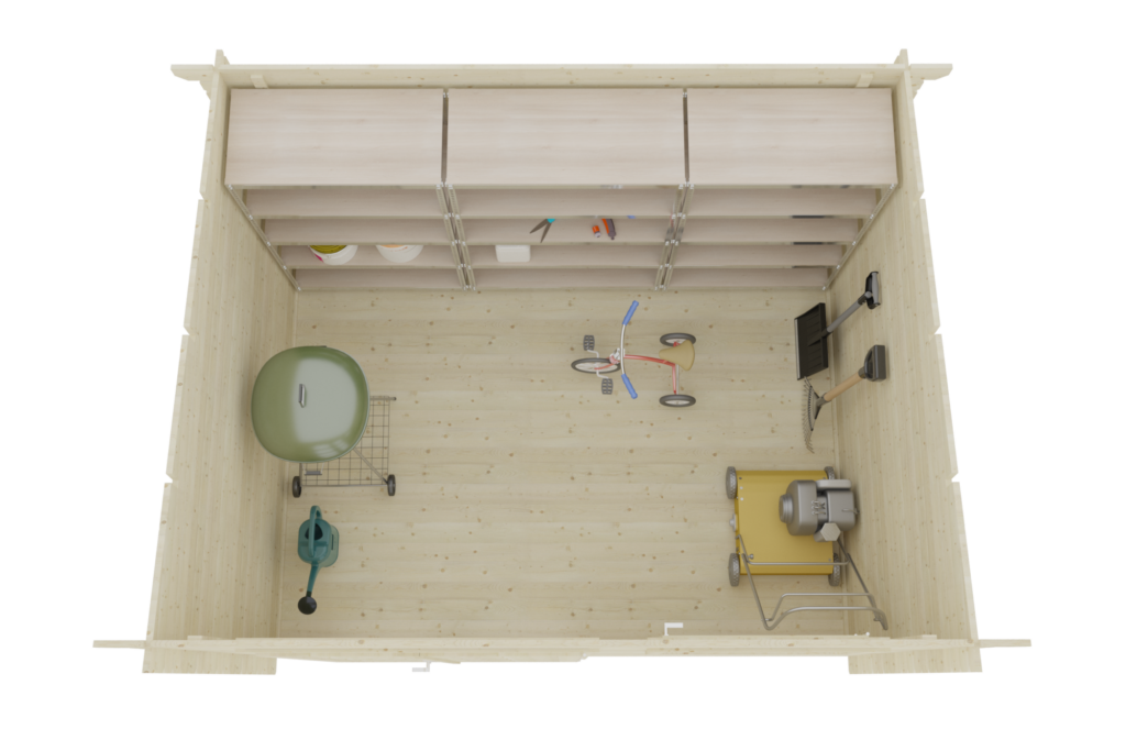 Tip: assemble on a LEVEL concrete slab, paving stones, or treated 4×4’s to raise the building off the ground