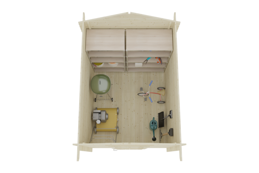 Tip: assemble on a LEVEL concrete slab, paving stones, or treated 4×4’s to raise the building off the ground