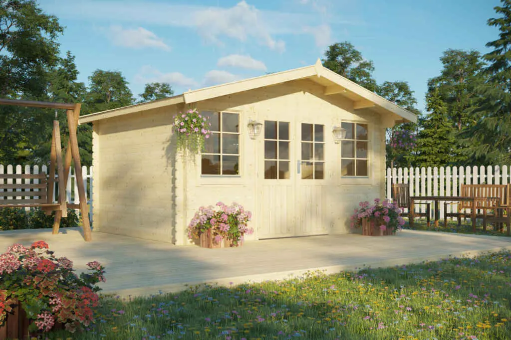 Tip: assemble on a LEVEL concrete slab, paving stones, or treated 4×4’s to raise the building off the ground